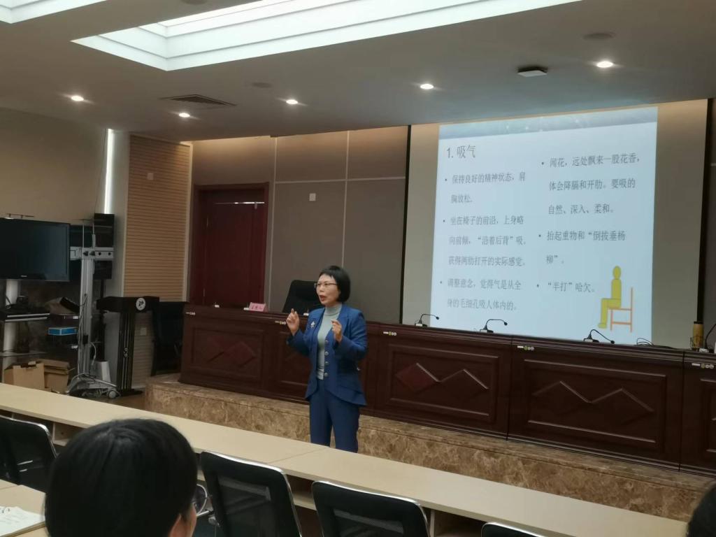 英君教授首先从教师嗓音保护的必要性、嗓音问题及成因、嗓音保护方法等方面进行了深入浅出的讲解。其次,通过理论讲授和现场练习相结合的方式,围绕气息控制、共鸣控制、吐字归音等方面与大家进行互动。她指出,教师尤其是体育教师,是声带最容易疲劳的职业之一。嗓音保护是每位教师都应该重视的问题,要采取积极有效的措施,避免过度用嗓。应通过练习,养成良好的发声习惯,有效减轻嗓音负担。