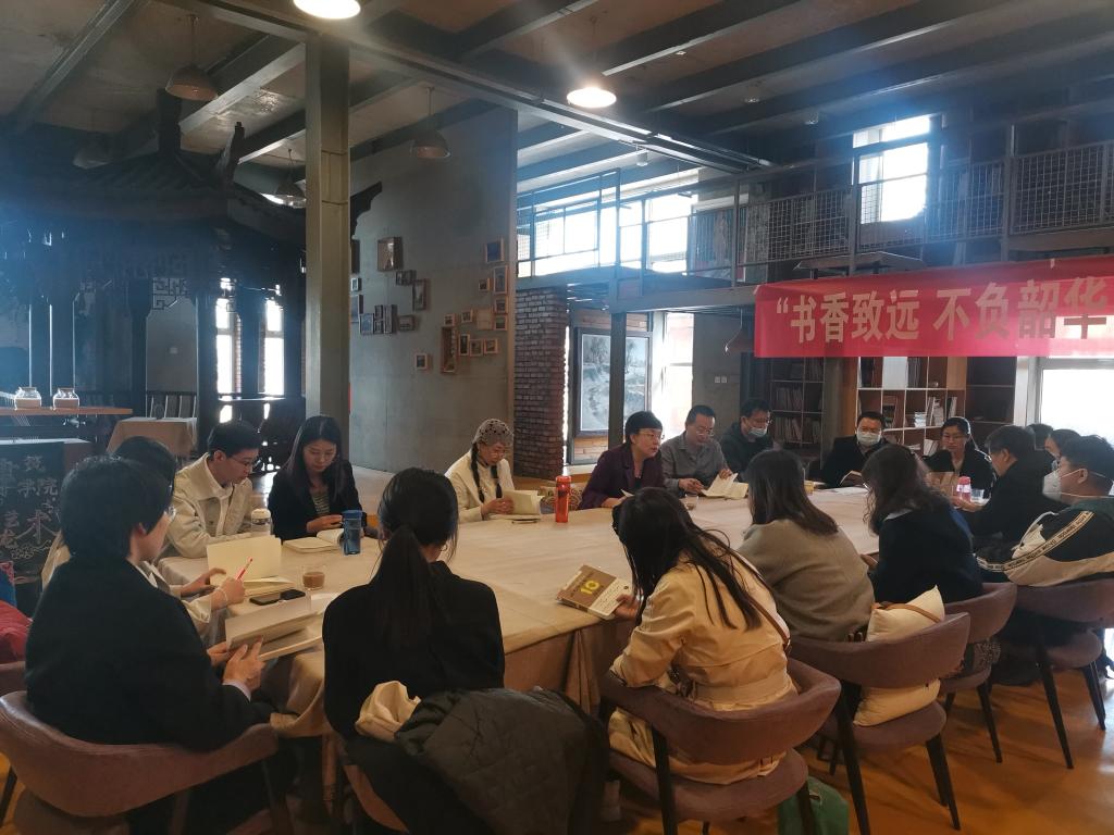 读书会期间,连续四周的周五下午,在建筑馆艺术沙龙以阅读分享的方式开展读书会沙龙活动。伴随着书香与茶香,沙龙在热烈的研讨氛围中展开。每一章节都由一位教师先进行领读,之后各位参与的教师根据本章节内容畅谈读书感悟、分享教学心得。同时,针对每一章节的主题,还特别安排一位优秀教师作为嘉宾,向教师们分享自己的教学经验和小故事。