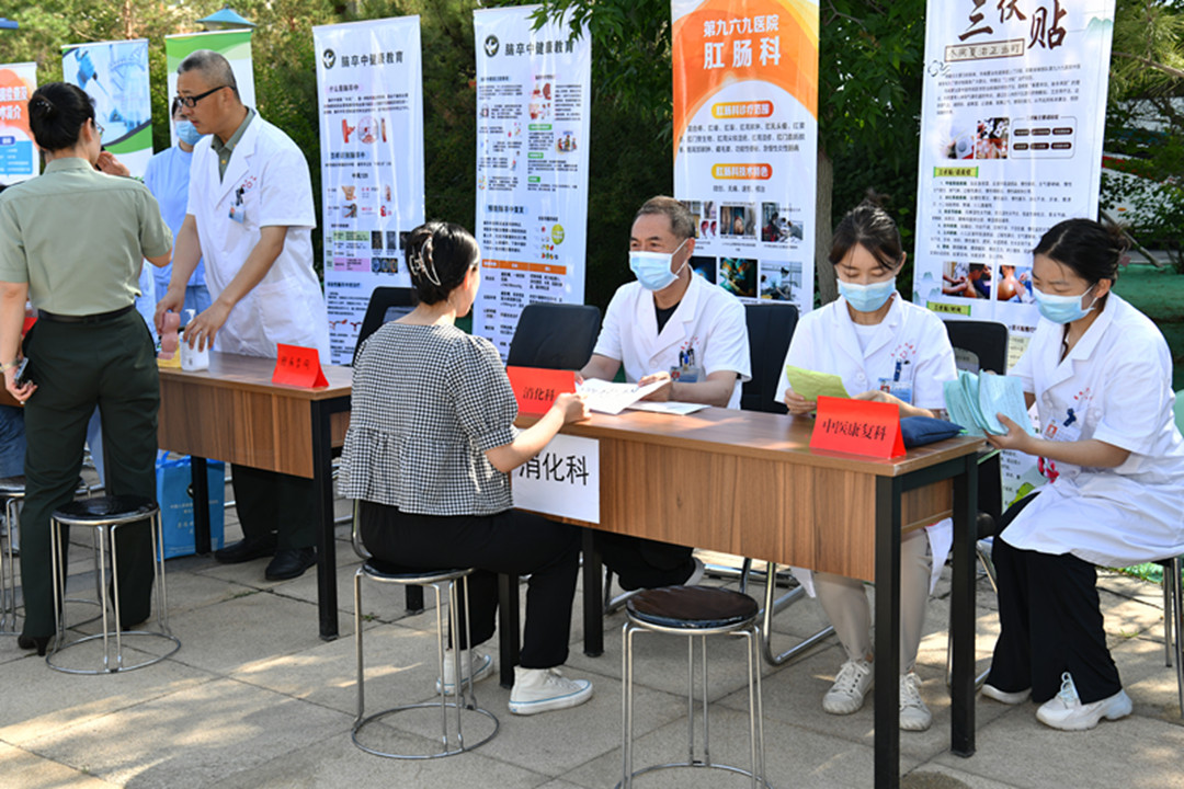 义诊现场,来自九六九医院普通外科、妇产科、中医康复科等17个主要科室的骨干医师携便携式B超、血糖仪等设备为师生提供彩超检查、脉诊检查、体检咨询等免费医疗服务。夏日炎热,医师们还为就诊师生贴敷三伏贴,缓解常见的偏头痛、头晕等症状。