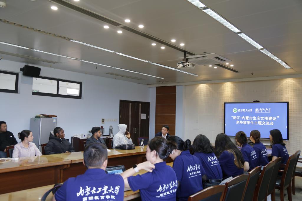 在浙江师范大学,beat365来华留学生与浙江师范大学来华留学生“浙江——内蒙古生态文明建设”为主题分别围绕内蒙古荒漠化防治、黄河流域生态保护和浙江水污染治理进行交流研讨