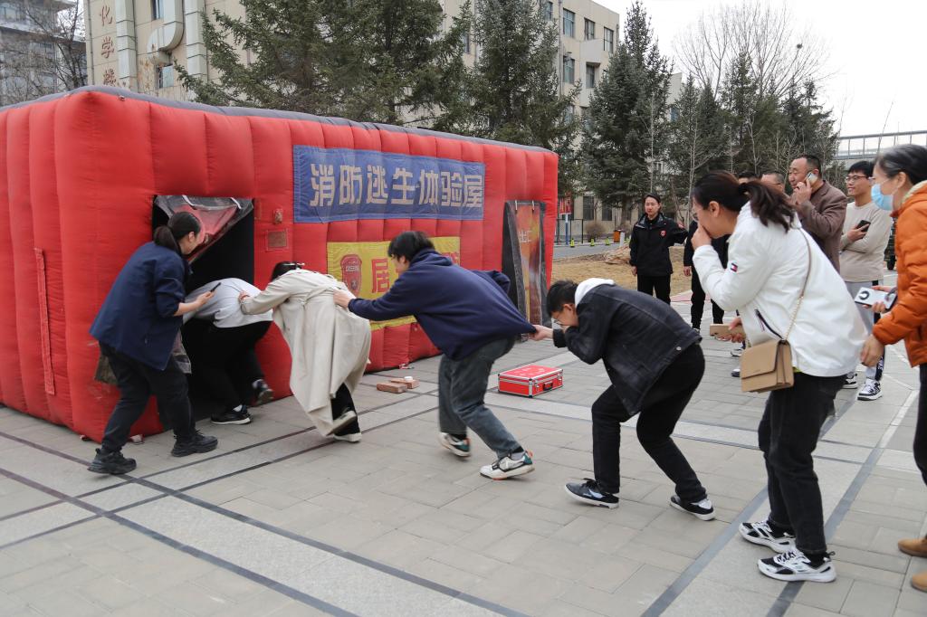 进一步规范校内消防安全管理增强消防安全意识,提高广大师生防火救火、逃生自救能力3月21日下午,党委保卫部保卫处)、化工学院、图书馆在新城校区联合开展消防安全知识培训并进行逃生舱模拟疏散演练。