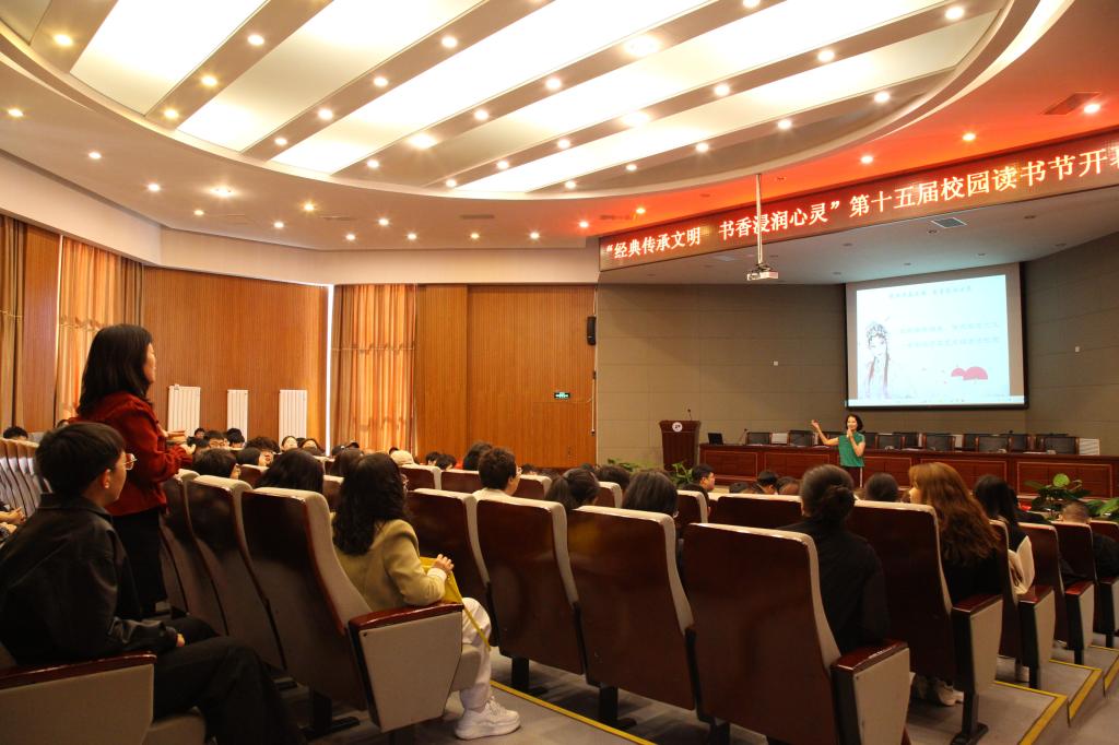 本届读书节以 “弘扬国粹经典,传承非遗文化——晋剧名家进校园”活动开启,呼市晋剧团艺术总监、国家一级演员、内蒙古剧协副主席何小菊为学生们普及晋剧历史和知识,现场表演展现晋剧魅力,并邀请在场师生一同体验折扇、团扇、水袖等表演技巧,让师生充分感受传统文化的魅力。