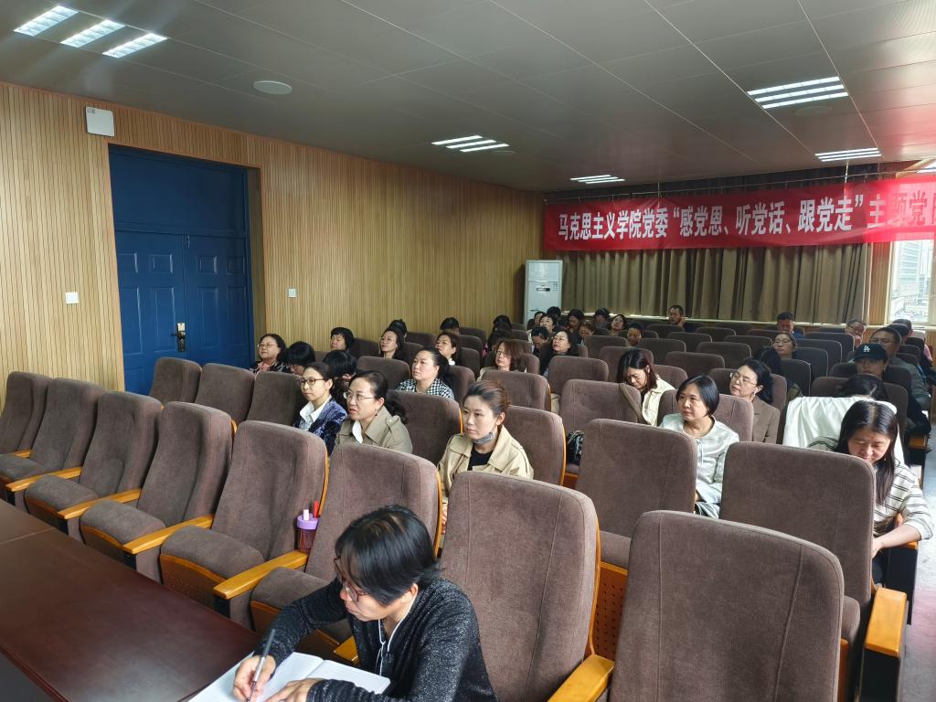 为进一步提高思政课吸引力,让思政课更接地气,4月28日下午,马克思主义学院开展本学期第二期教学工作坊暨“构建思维型课堂 让思政课更接地气”专题讲座。讲座邀请内蒙古师范大学马克思主义学院副教授、学科思政硕士研究生导师齐玉梅到校开展专题培训。学院相关领导,全体思政课教师参加。