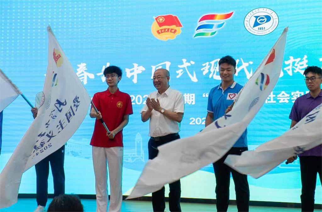 王利明为校直属队授旗并讲话。相关工作负责人安排部署介绍2024年大学生暑期“三下乡”社会实践活动主题、内容、组织方式、相关要求等。指导教师、实践队员代表分别发言。