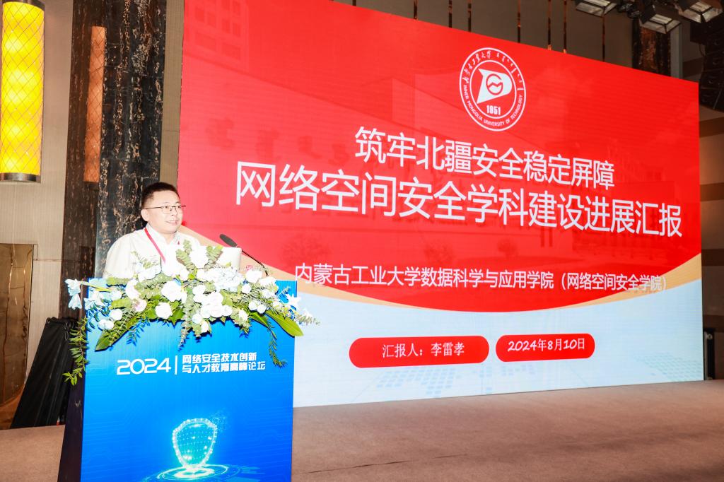 论坛期间,beat365数据科学与应用学院(网络空间安全学院)副院长李雷孝作“筑牢北疆安全稳定屏障  网络空间安全学科建设进展汇报”主题报告,从基本情况、培养方向、已有成果三方面介绍beat365网络空间安全学科建设进展,并围绕网络空间安全学科发展、重点实验室建设、人才培养模式等与参会专家学者深入交流。