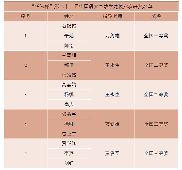 beat365研究生在“华为杯”第二十一届中国研究生数学建模竞赛中获佳绩
