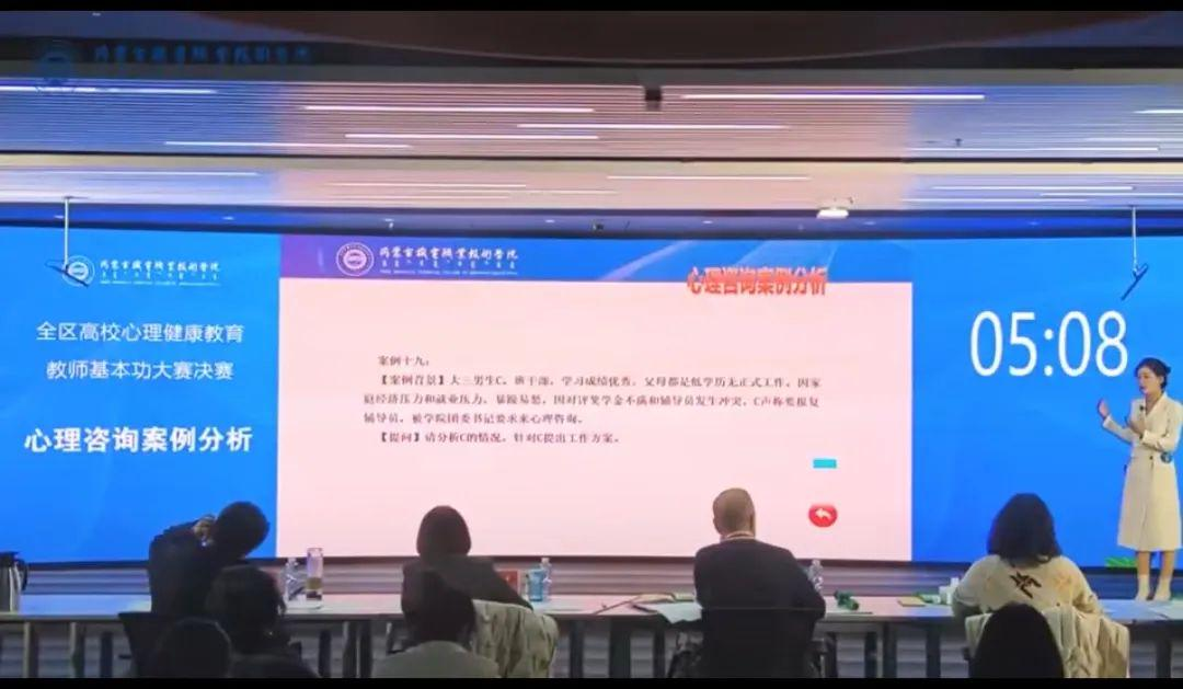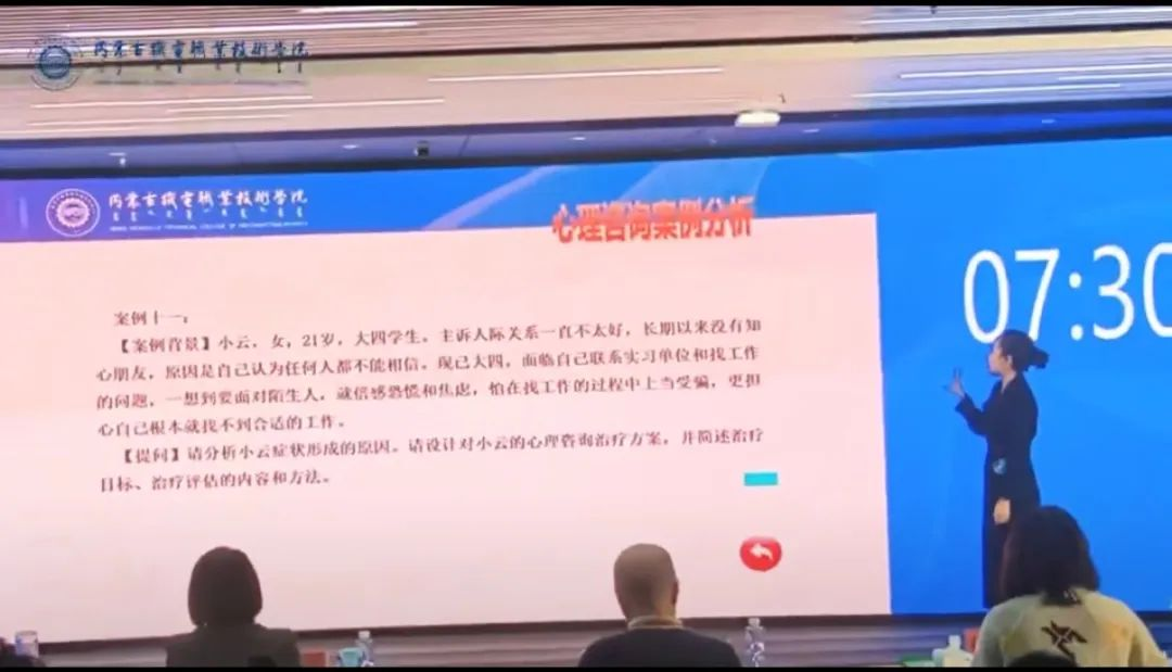 本次大赛由内蒙古自治区教育厅主办,内蒙古机电职业技术学院承办,分为初赛和决赛两个阶段,涵盖心理健康教育课程教学设计、教学展示、心理咨询案例分析等。比赛中,两位教师沉着冷静、灵活应对各个环节,凭借扎实的专业基础和丰富的实践经验,以精准的表达、精湛的业务和饱满的热情展现出良好的专业素养和丰富的工作经验,赢得现场观众评委一致好评