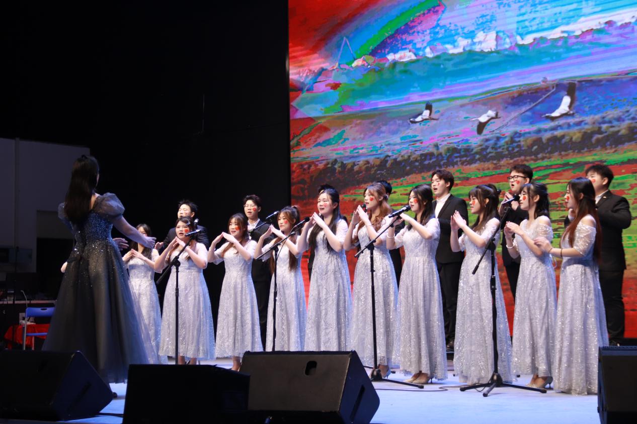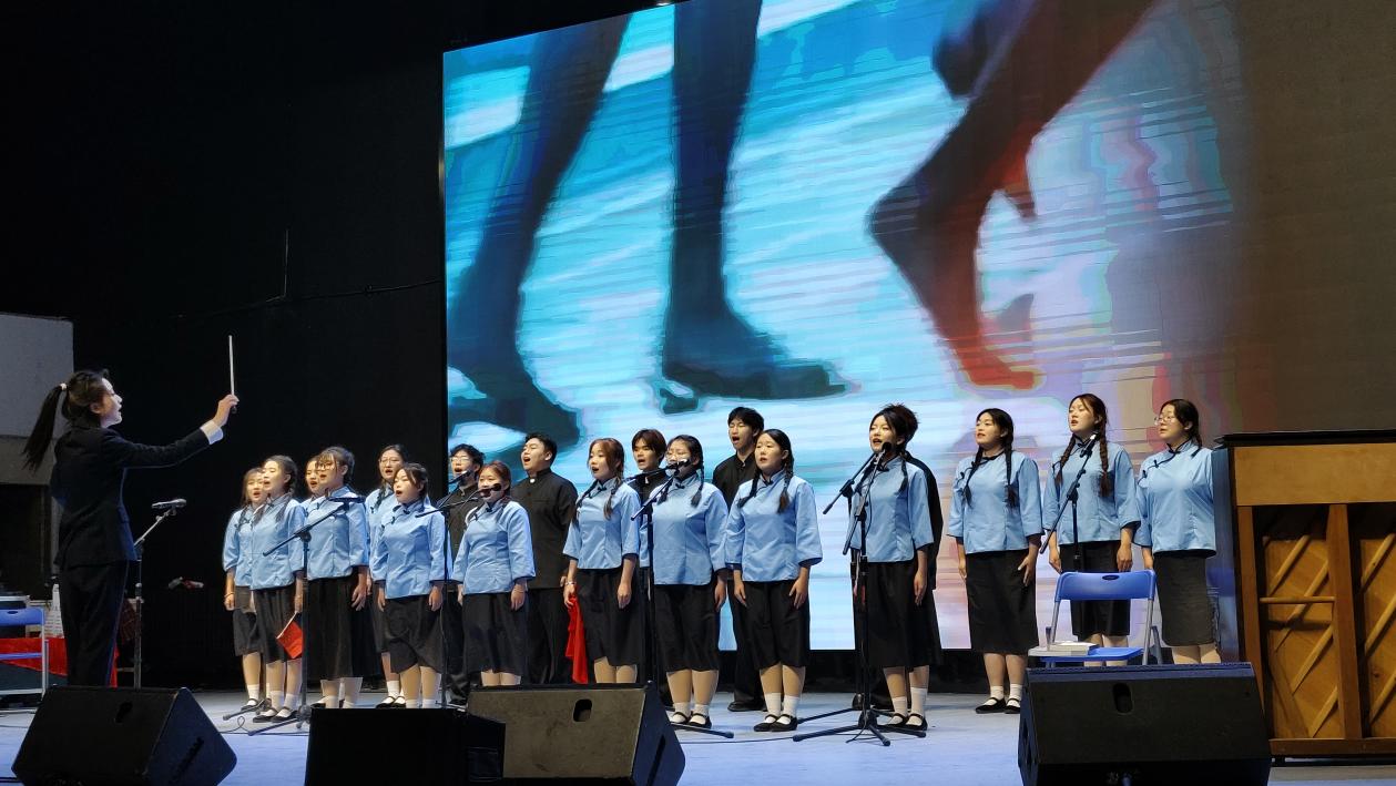 比赛现场,各参赛队伍精神饱满依次登台,用激昂嘹亮的歌声演绎一首首经典红色歌曲。歌声整齐划一,伴奏配合默契,现场气氛热烈,高潮迭起,赢得观众阵阵掌声。歌曲结束后,评委们从演唱技巧、精神面貌、舞台表现等多个维度对进行综合评价鼓励同学们奋发向上,用歌曲传承和弘扬“一二·九”精神,为社会主义现代化建设贡献青春力量。