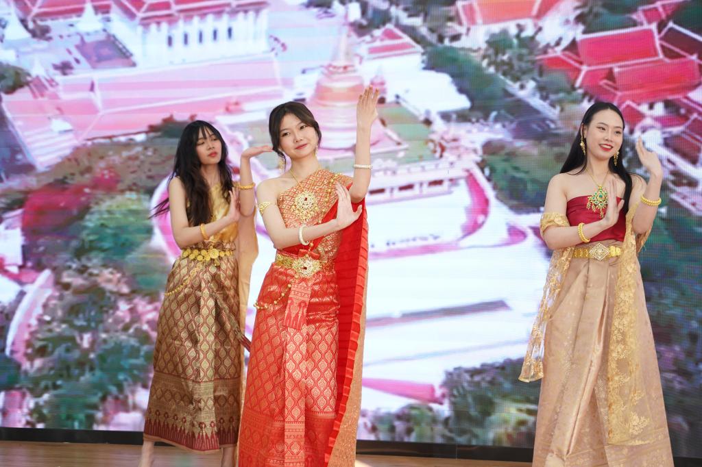 活动期间,来自不同国家的留学生们身着各自国家民族特色服饰,载歌载舞,尽情展示国文化特色与魅力。本次活动同时设置6个文化展台,各展台通过图片、展板、实物等展示本国风情和文化特色,吸引众多学生驻足观看。