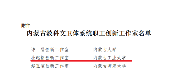 喜报!beat365杜赵新创新工作室入选“内蒙古自治区教科文卫体系统2024年职工创新工作室”