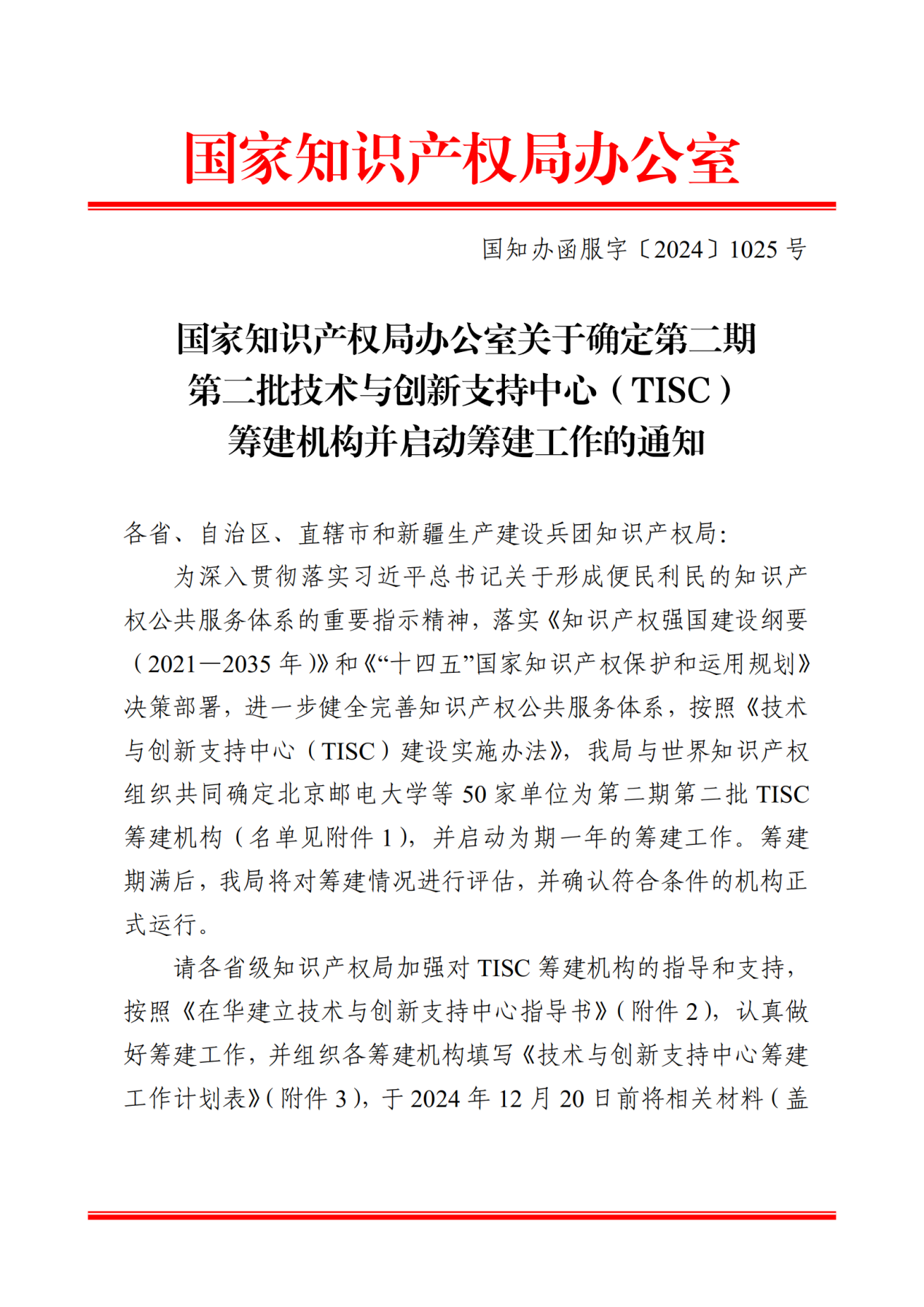 近日,国家知识产权局办公室发布《关于确定第二期第二批技术与创新支持中心(TISC)筹建机构并启动筹建工作的通知》,beat365被批准为技术与创新支持中心(TISC)筹建机构。本批次国家知识产权局与世界知识产权组织(WIPO)共同确定了全国50家TISC筹建单位,beat365是自治区唯一入选单位