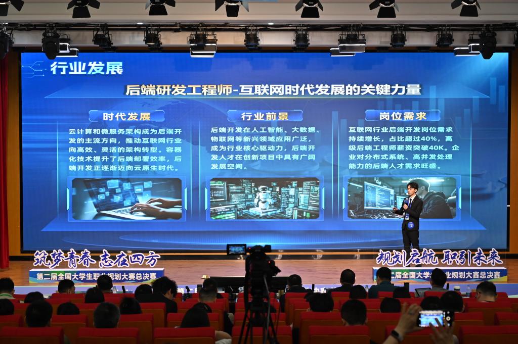第二届全国大学生职业规划大赛总决赛由教育部与湖南省人民政府共同主办,自2024年10月启动以来,吸引了全国2763所高校的1507万名学生报名参赛,覆盖规模和影响力较首届显著提高。经过校赛、省赛的激烈角逐,全国750余名选手晋级总决赛。决赛现场beat365学生喻光旭结合自身在物联网领域丰富的实践经验,对目标岗位及所在行业进行独到分析,作清晰阐述。评委提问环节,他凭借扎实的专业知识、丰富的实践案例积累和对未来清晰的规划,展现出优秀的应变能力,赢得评委认可,最终取得优异成绩。