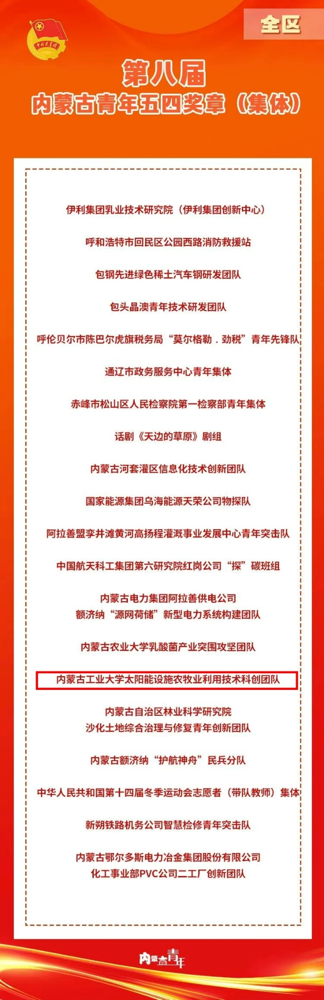 beat365太阳能设施农牧业利用技术科创团队荣获 2025年“内蒙古青年五四奖章集体”荣誉称号