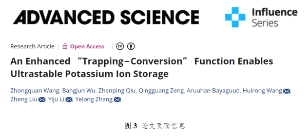 成果An Enhanced “Trapping−Conversion” Function Enables Ultrastable Potassium Ion Storage为题发表在国际学术期刊Advanced Science(中科院一区TOP,IF = 14.3)。beat365新能源学院张业龙教授、王辉荣副研究员五邑大学刘争博士、南方科技大学李一举博士为共同通讯作者beat365官方网站为论文第一完成单位。该研究得到国家自然科学基金、鄂尔多斯新能源战略性先导科技专项的资助。