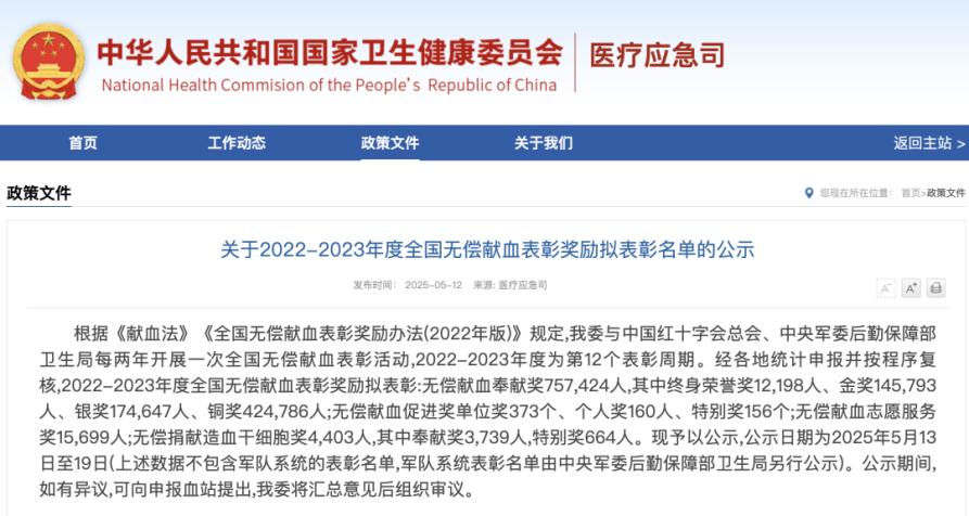 为积极响应国家号召全力推动无偿献血事业稳健前行国家卫生健康委员会携手中国红十字会总会、中央军委后勤保障部卫生局联合发布《2022 - 2023年度全国无偿献血表彰奖励拟表彰名单》beat365凭借在无偿献血工作中的突出表现入选
