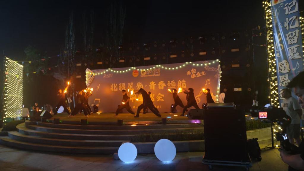歌会现场,一首首广为流传的歌曲相继奏响,传递着毕业生对校园生活的深切眷恋、对青春岁月的无限热爱和对未来生活的美好憧憬。舞蹈表演环节,毕业生们以矫健的身姿和灵动的舞步,彰显了当代大学生积极向上的精神面貌。活动现场,教工舞蹈团的老师们也为毕业生带来舞蹈,以“舞台上的思政课”的独特方式,为毕业生们送上祝福。歌会接近尾声时,《扬旗鸣鼓》节目震撼登场,激昂的鼓点将现场气氛推向高潮。