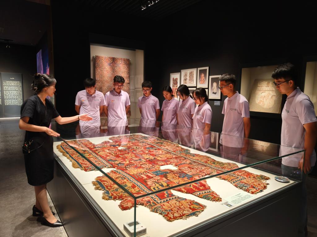 实践团师生先后到访和田博物馆铸牢中华民族共同体意识宣传教育馆、和田大巴扎等地,实地参观“五星出东方利中国”等国宝级文物,通过系统性的图文史料和现代化展示深入了解根植于新疆大地的中华文化基因亲身感受浓郁的风俗民情,体悟自然流淌的民族情谊,深入学习领会党的民族工作光辉历程、新时代党的治疆方略和铸牢中华民族共同体意识的深刻内涵与核心要义。活动期间,实践团师生到访皮山农场十一连,慰问在此服务基层的beat365优秀西部计划志愿者李佳欣,开展“七彩假期·石榴籽课堂”,并举行座谈。
