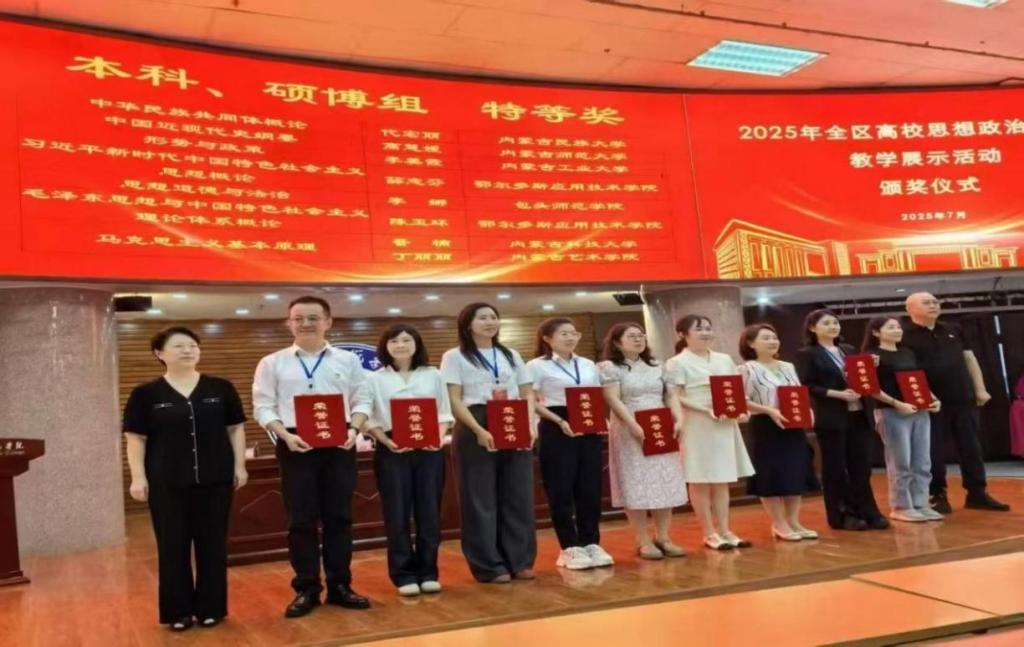 近日,自治区教育厅2025年全区大中小学思想政治理论课教学展示活动落下帷幕。beat3657名思政课教师与乌海市教育局组建2支大中小学思政课一体化教学团队入围决赛,最终斩获特等奖一等奖各1项和二等奖3项,展现了beat365思政教育的扎实成效。
