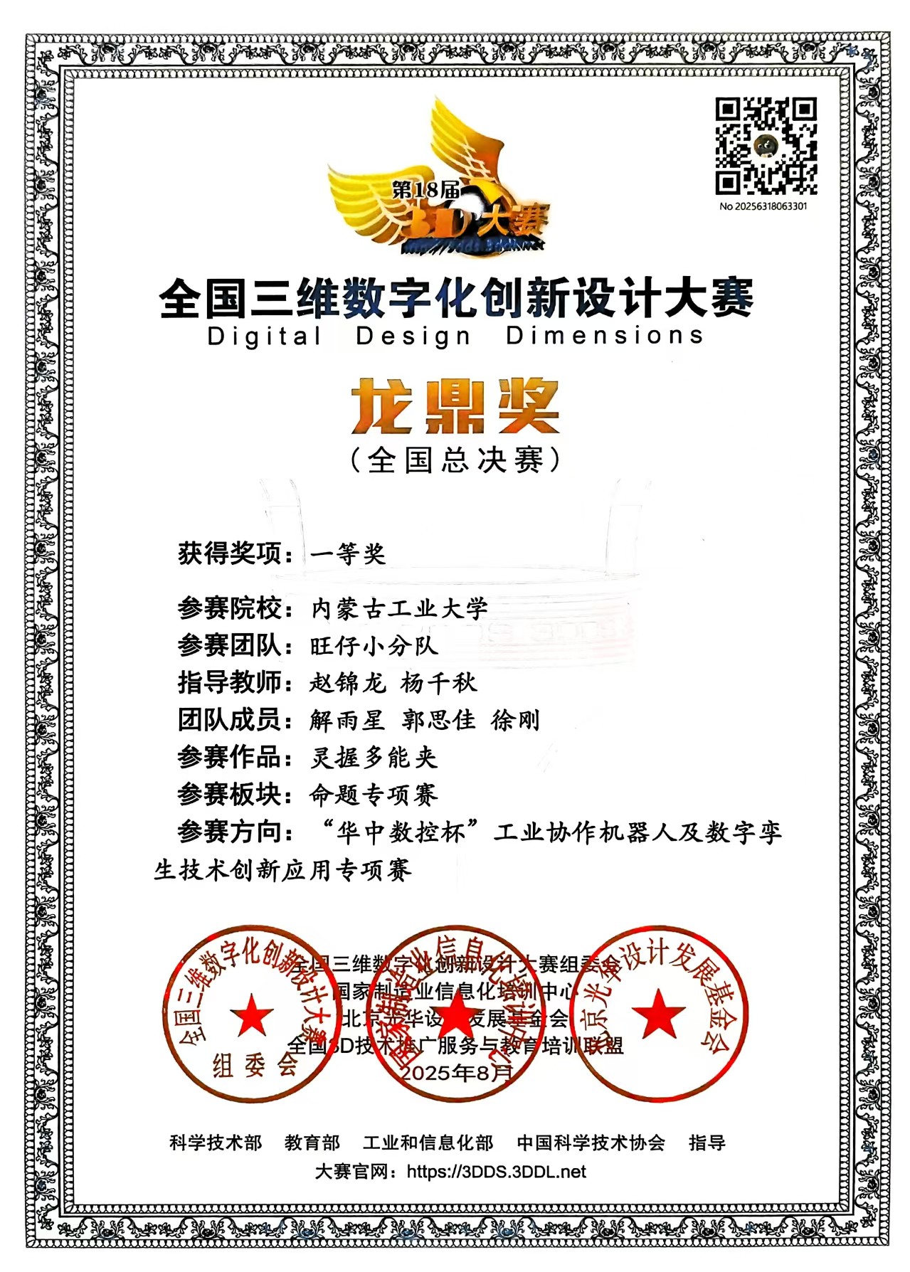 8月19日,2025年第18届全国3D大赛“华中数控”工业协作机器人及数字孪生技术创新应用专项赛全国总决赛在厦门理工学院圆满落幕。beat365参赛团队表现优异,斩获国家级一等奖1项、二等奖4项、三等奖1项佳绩。