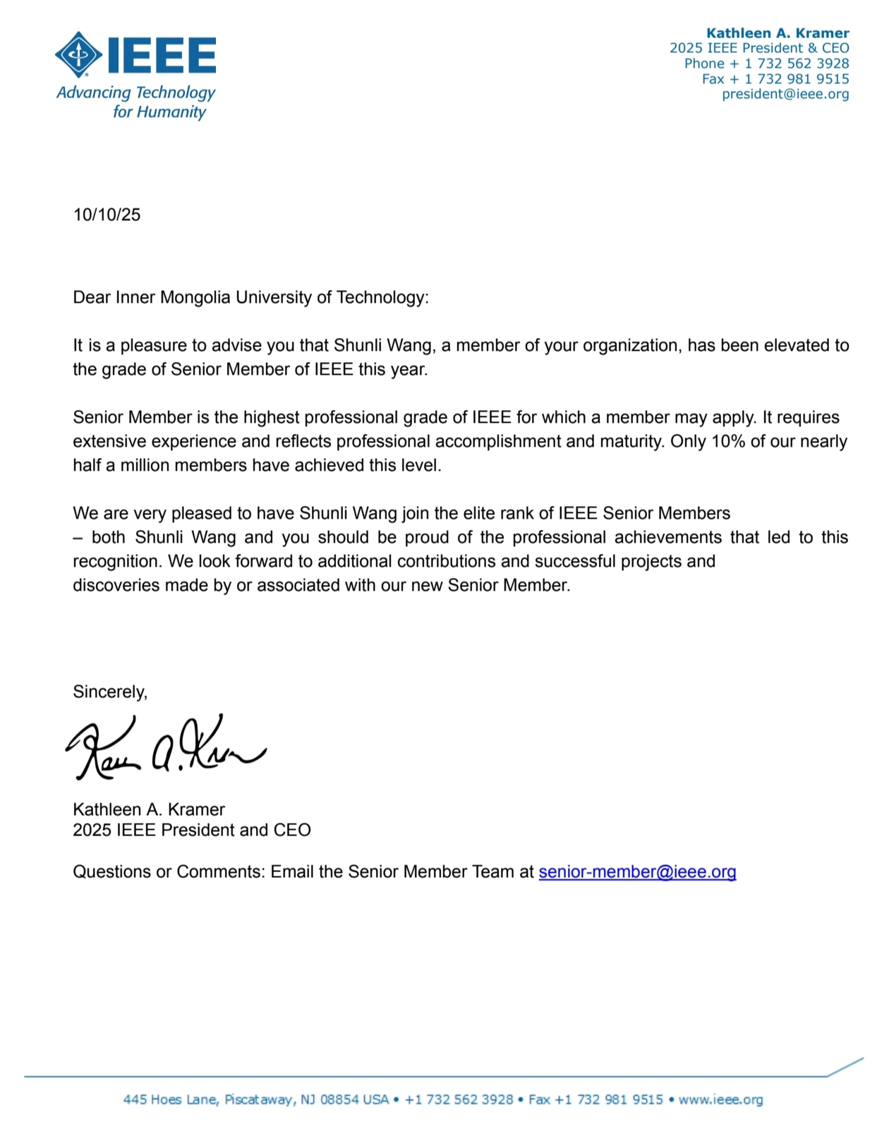 IEEE作为全球规模最大的电气与电子工程领域专业组织,其高级会员需满足至少10年专业经验、5年以上显著贡献及同行推荐等严格标准,在全球会员中占比仅约10%。该项荣誉是对两位教师在新能源发电、电能存储、源网荷储协调控制等领域长期积累的充分肯定,为学校科研团队建设、高层次人才培养搭建了更广阔的国际交流平台,为学校高质量发展注入新动能。