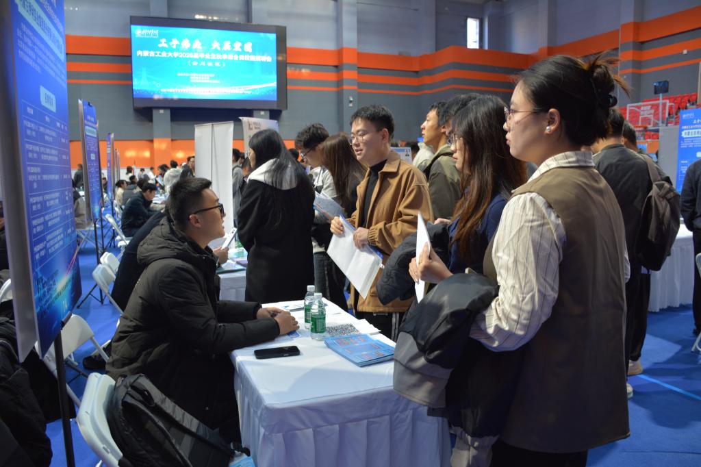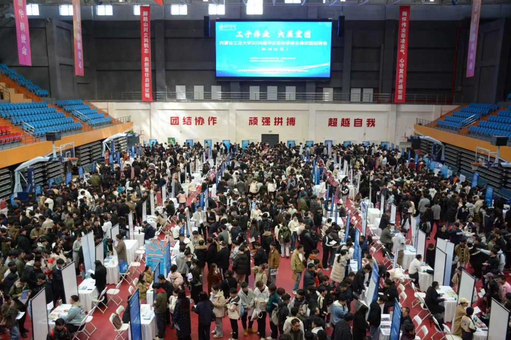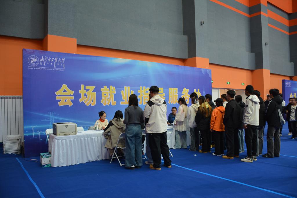 本次招聘会得到呼和浩特市经济技术开发区科技局等相关部门大力支持。招聘会现场精心设置“智能驱动+暖心相伴”双轨就业指导服务模式。线上设置AI“求职基地”提供精准高效的智能服务,线下由校院两级就业指导教师组成“导师团”提供面对面个性化指导,实现从简历修改到面试技巧辅导的求职能力提升闭环,为学生扫清求职盲区,显著提升毕业生职场竞争力。招聘会现场还设置“现场就业指导服务”“AI赋能就业一站式服务”“直播带岗”及“征兵入伍宣传”等专区,集中为毕业生提供政策指导和求职服务。