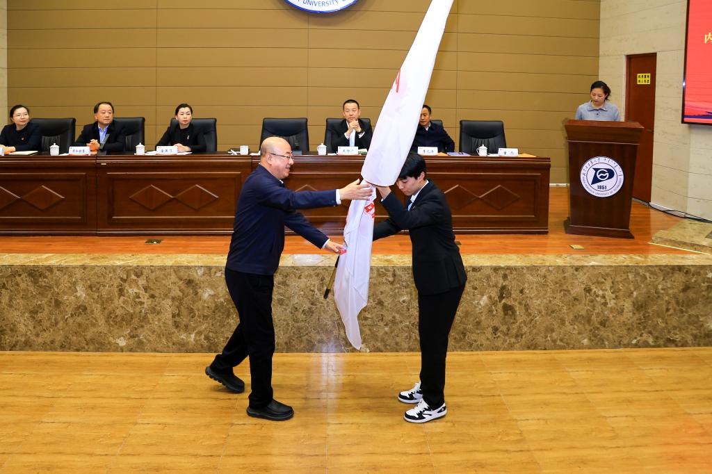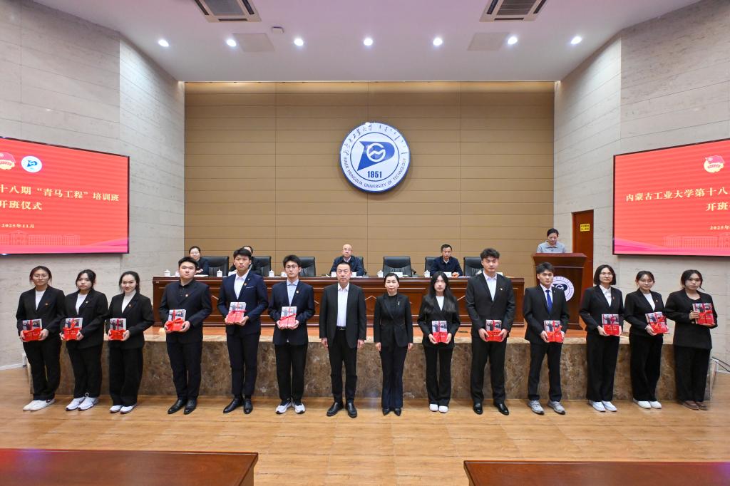 仪式在庄严的国歌声中拉开序幕。王利明为第十八期青马班授旗,标志着第十八期青马班正式启航。校团委书记尚进宣读第十八期“青马工程”培训班临时团支部委员名单。与会领导为“能源强国”青马宣讲团授旗,为学员代表赠送书籍。往期优秀学员代表、建筑学院本科生石兴怡分享学习心得与实践感悟,电力学院本科生赵耀栋作本期学员代表发言,表达积极参与培训、努力提升自我的决心。