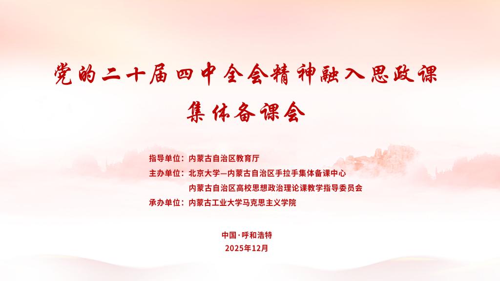 本次集体备课会邀请北京大学马克思主义学院教授、博士生导师王生升和张会峰作主旨报告。两位教授分别围绕党的二十届四中全会精神、“十五五”时期发展目标与战略部署进行深入阐释,并就如何将党的二十届四中全会精神有机融入思政课教育教学提出针对性路径与方法建议。主旨报告结束后,内蒙古师范大学、内蒙古科技大学、呼和浩特职业技术大学马克思主义学院教师代表作教学资源分享交流,马军教授作点评发言,号召全体思政课教师深耕课堂、凝练特色,积极投身教学研究与资源建设,共同打造更多“金课”“金案”,将个人教学智慧转化为可共享的共同体财富,推动思想政治理论课高质量内涵式发展。
