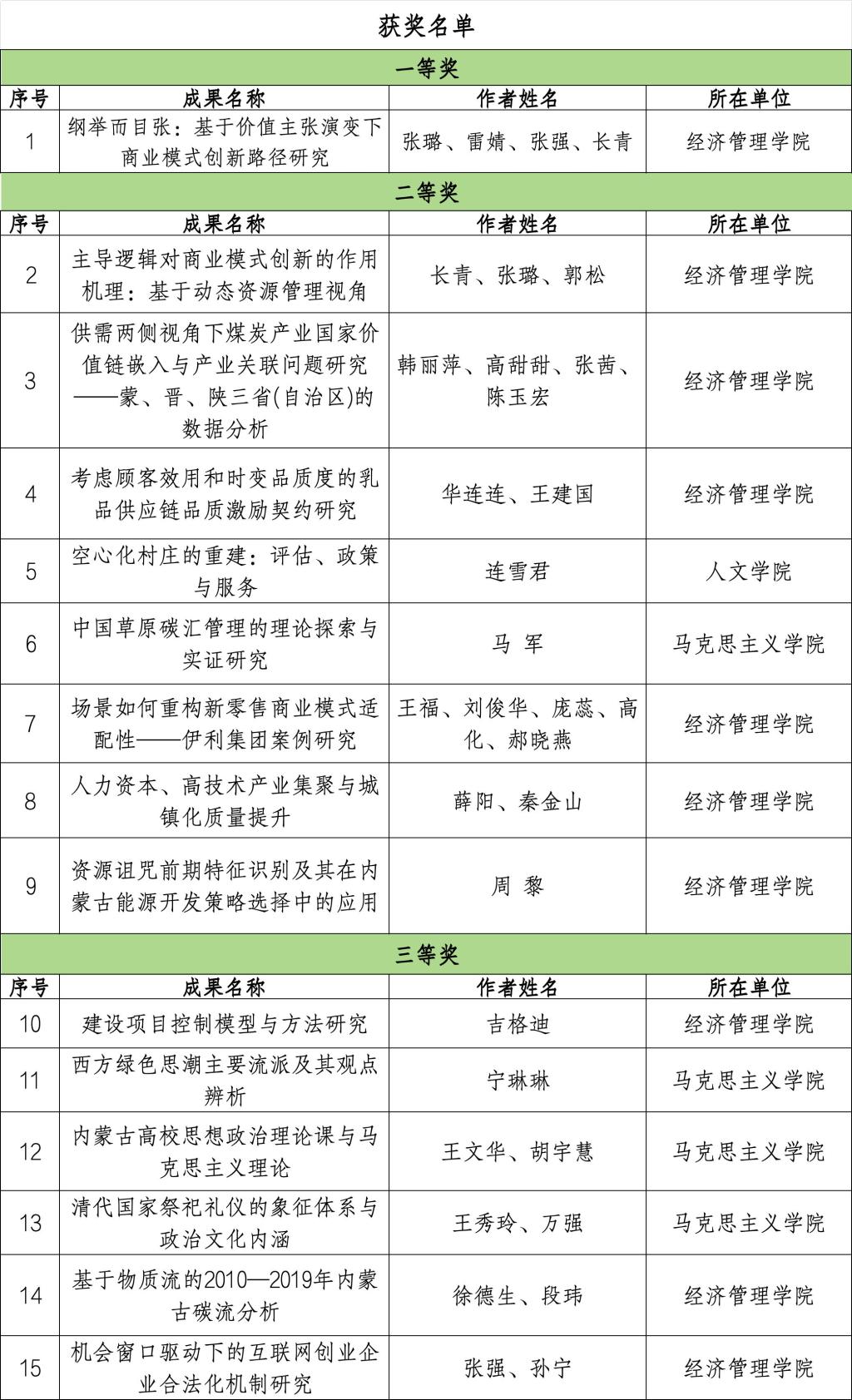 近日,第十一届内蒙古自治区哲学社会科学优秀成果奖评选结果公示,beat36515项成果获优秀成果奖,其中一等奖1项、二等奖8项、三等奖6项,涵盖管理学、经济学、社会学、马克思主义及中国史等多个领域,获奖总数和质量创新高。