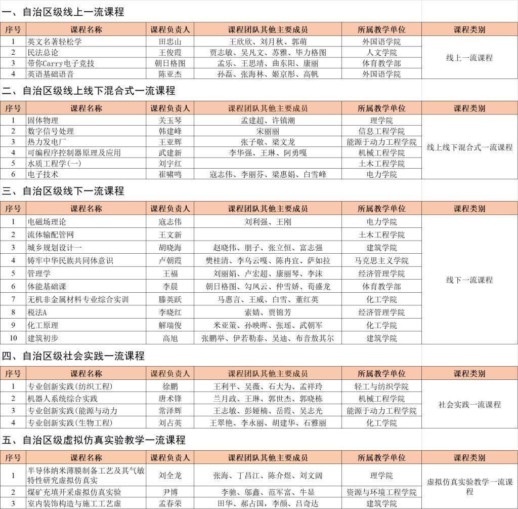 第三批自治区级一流课程获批名单