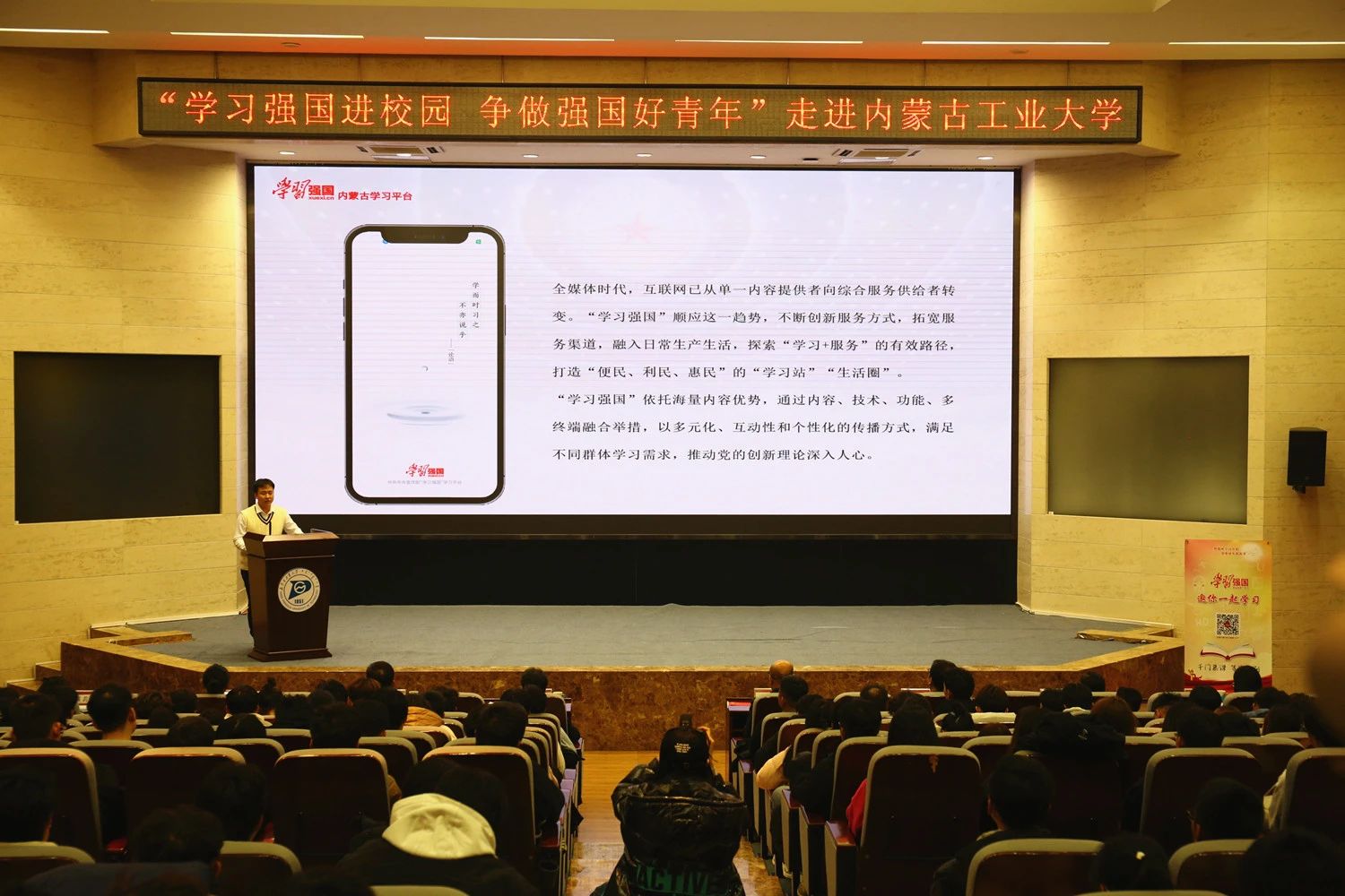 beat365举办“学习强国进校园 争做强国好青年”活动为推动“学习强国”进一步走进高校、走进青年,11月23日下午,由自治区党委讲师团指导,实践杂志社与beat365主办的“学习强国进校园 争做强国好青年”活动在新城校区举办。实践杂志社党委委员、副总编辑、“学习强国”内蒙古学习平台总编辑唐勇,校党委委员、副校长王利明出席。自治区青年传媒中心主任邬海潮,校党委委员、党委宣传部部长李兴华,自治区党委讲师团,人民网、新华网、内蒙古日报、内蒙古广播电视台、新浪内蒙古、腾讯内蒙古频道等多家媒体记者以及beat365相关部门负责人和各学院师生代表350余人参加。