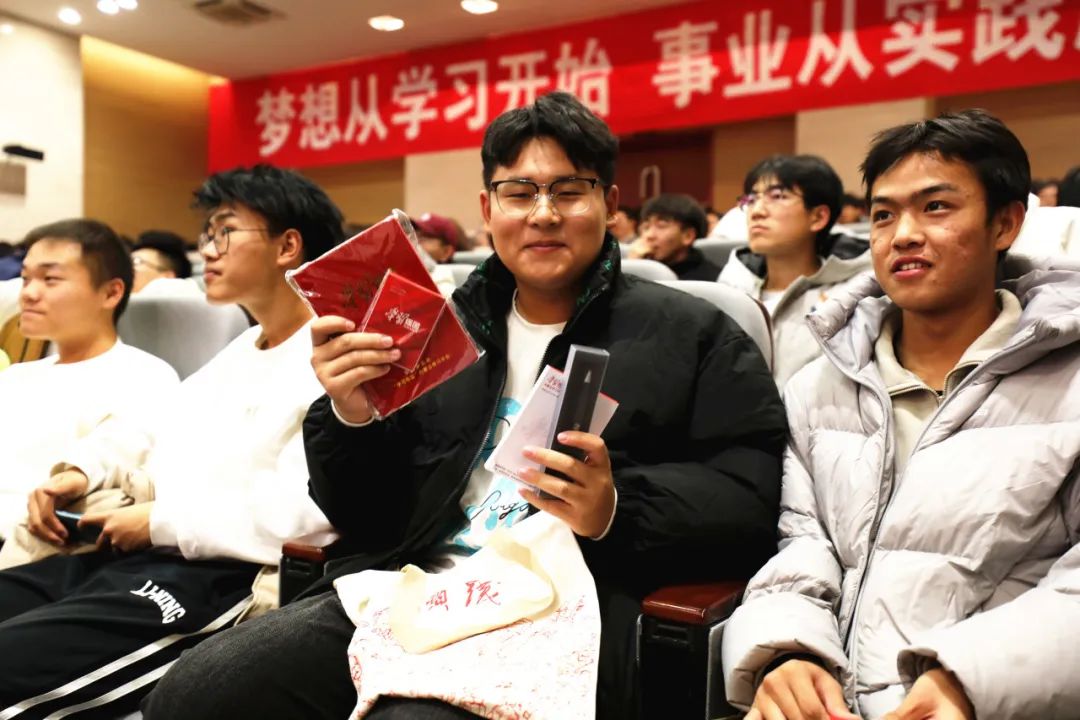 活动现场开展的“学习强国”学习平台“挑战答题”和“双人对战”将气氛推向高潮。同学们踊跃回答、竞相参与,台前比赛紧张激烈,台下学生掌声连连。本次活动设置了现场推广区,同学们可以扫码下载“学习强国”、关注“学习强国”内蒙古学习平台,现场参与答题、领取纪念品,还安排了拍照打卡、签名寄语等互动活动,鼓励大家争取成为“学习达人”,并留下对“学习强国”学习平台的祝福。