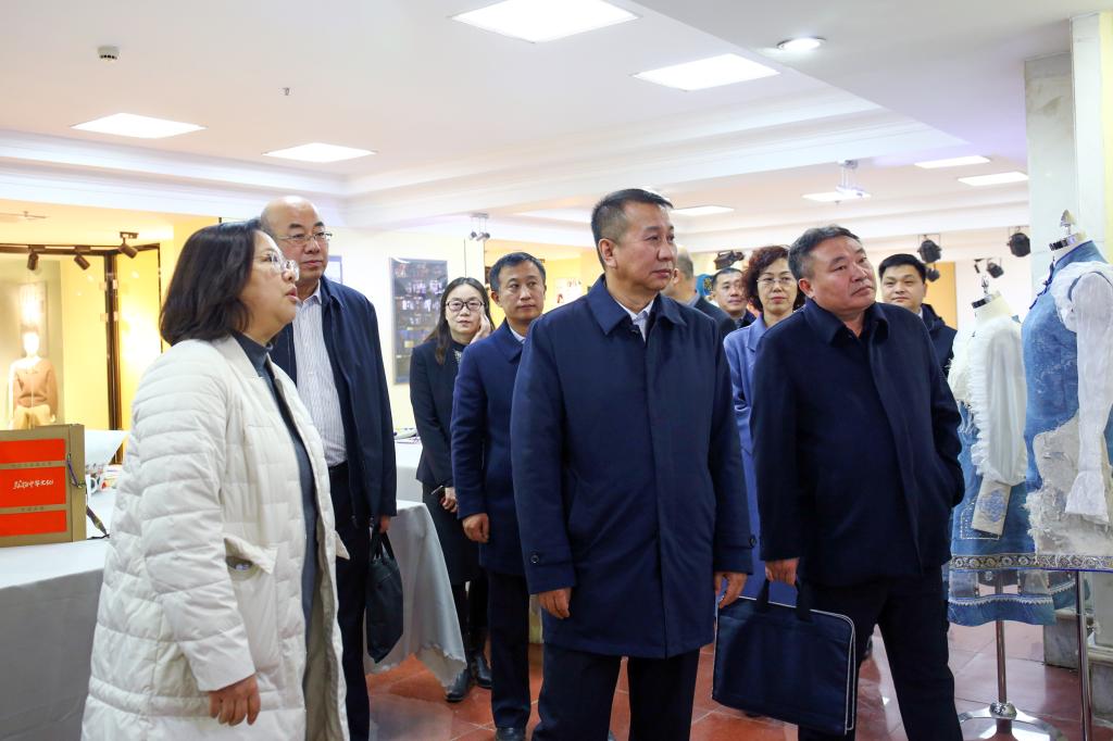考察组一行还查阅了基地申报材料,实地察看内蒙古乡村建设研究中心、人文学院民法典展厅、轻工与纺织学院服装与服饰设计展厅。