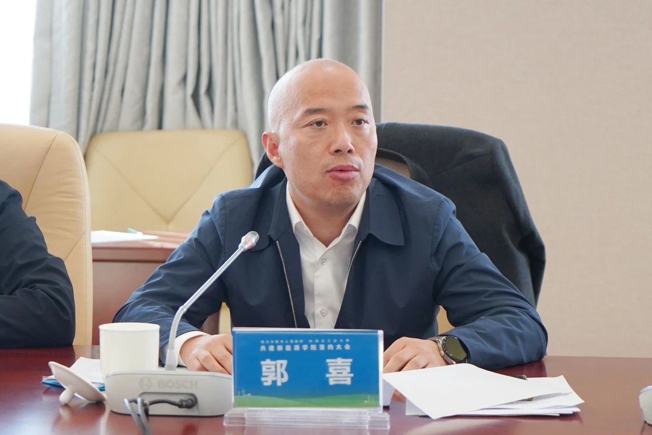 郭喜说,新能源学院的成立,是双方深化合作的重要里程碑。要坚持高起点、高标准、高质量建设要求,把产学研用一体化作为起点基调,推进人才链、教育链、资金链、创新链、产业链深度耦合;把高端人才队伍建设作为基础关键,大力招才引智;把高效能管理运行作为良好保障,将学院建成办学自主、机制创新、治理高效、活力迸发的高等教育发展特区。