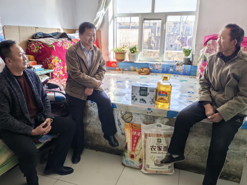 调研期间,阿力坦嘎日迪一行在驻村工作队员的陪同下,走访慰问脱贫户和老党员,与他们嘘寒问暖拉家常,了解他们的家庭收入、生产生活、身体情况以及目前存在困难,并送上米、面、油等慰问品。