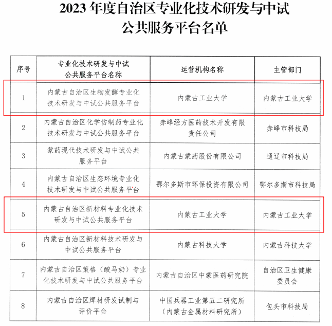 8月16日,自治区科学技术厅官网公布2023年度自治区专业化技术研发与中试公共服务平台评审结果,beat365成功获批“内蒙古自治区生物发酵专业化技术研发与中试公共服务平台”“内蒙古自治区新材料专业化技术研发与中试公共服务平台”。