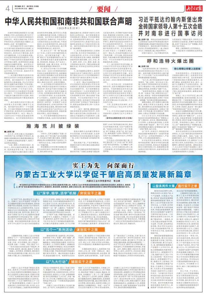 以“细学”为基,学懂弄通夯基础。采取集中学习、专题研讨、干部领学、个人自学、教育培训、延伸学习等方式,深入学习习近平总书记关于党的建设的重要思想,对内蒙古的重要指示精神,关于以学铸魂、以学增智、以学正风、以学促干的重要论述,关于高等教育的重要论述,以及在中共中央政治局第五次集体学习时的重要讲话精神等,并延伸学习教育评价改革、本科教育教学审核评估、学科专业设置及建设、学科评估等政策文件,从事什么工作就重点学什么,缺什么就重点补什么,做到知其言更知其义、知其然更知其所以然,筑牢理论之基、夯实业务基础。