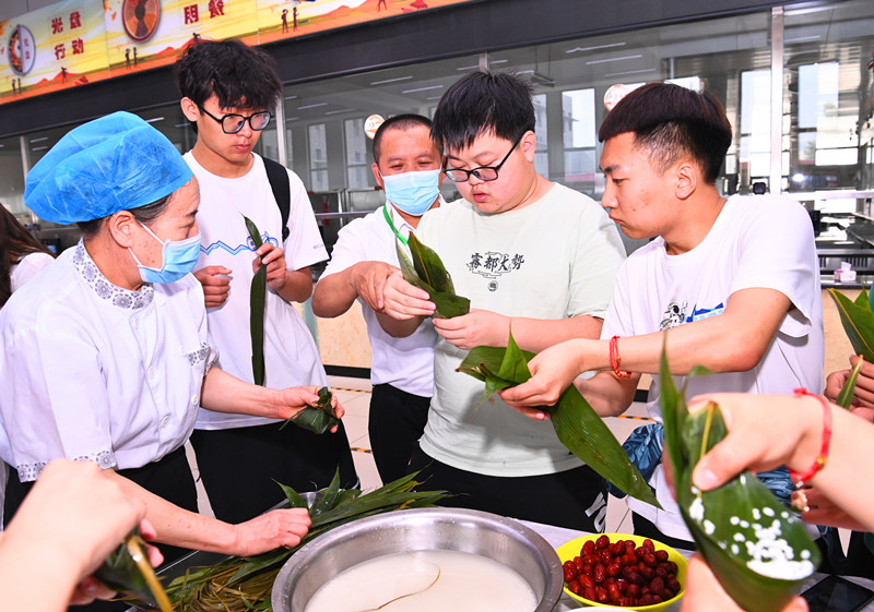 6月17日,由校团委、后勤管理处主办,后勤管理处饮食服务中心承办的弘扬传统文化 共享浓情粽香端午节系列活动在beat365新城校区举行。副校长王利明,部分职能部门负责人、两校区近1000名同学参加。