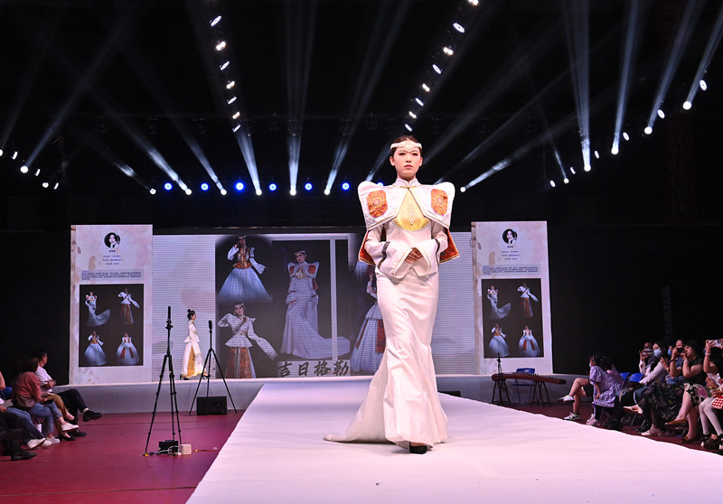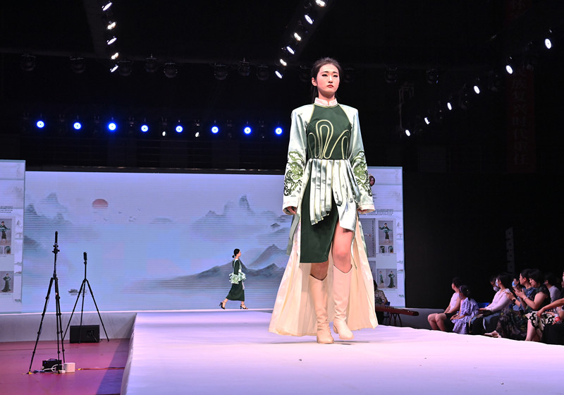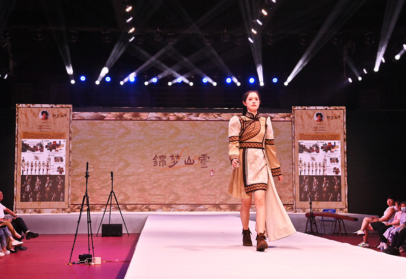 动态展采用时装秀的形式精彩呈现,主题“织音”意在传递纺织服装专业工大之音。时装秀分两场进行,展示的65组260套设计作品,是2023届毕业生在教师的指导下经过2个多月的设计、打版和制作完成。本次动态展分为产教融合、传承创新、创意时尚三大板块。产教融合板块集中展示校企深度合作、产教深度融合、围绕自治区羊绒针织品服装设计的实践教学成果,彰显了服务自治区产业发展的办学理念;传承创新板块以铸牢中华民族共同体意识为主线,通过设计作品展示对中华优秀服饰文化的传承与创新、融合与发展,传递出强烈的文化自信;创意时尚板块紧扣未来时尚,充满感染力与设计感,体现设计师的学术实践与创新成果。