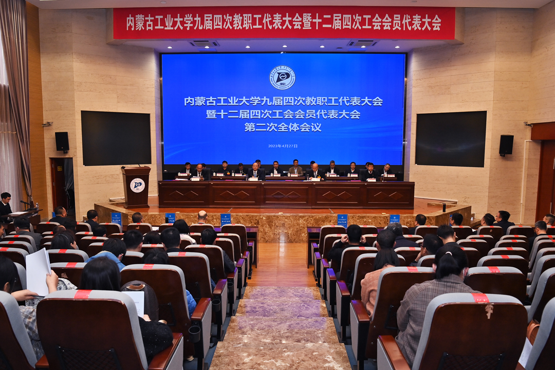 4月27日,beat365官方网站九届四次教职工代表大会暨十二届四次工会会员代表大会在新城校区召开。全体在校校领导、大会主席团成员、正式代表、列席代表、邀请人员及来宾参加会议。校党委副书记栗文义主持会议。