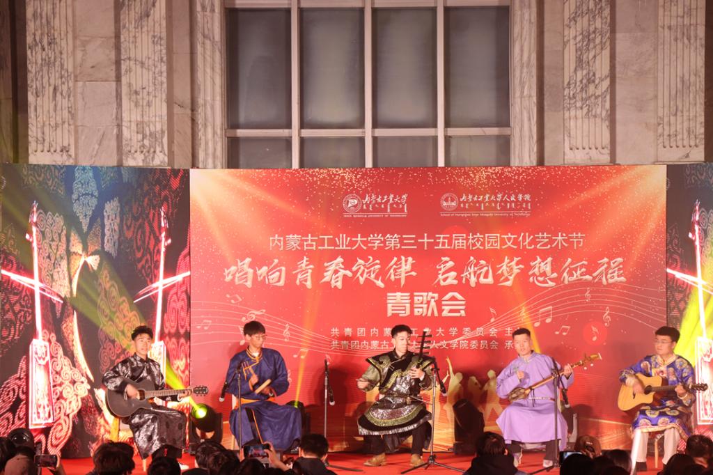 歌会在青春激荡的现代舞中拉开帷幕。《如愿》《想见你》《我记得》《平凡之路》等一首首令人动情的歌曲感动着现场每一位观众。《我的未来式》《稻香》《青花瓷》等歌曲串烧以及说唱《飘向北方》等唱出了青春活力。退伍士兵联唱《你的答案》《我的好兄弟》带动全场观众唱出强烈的家国情怀,唱出保家卫国的青春激昂,将活动气氛推向高潮。古风舞《再回眸》、民族舞《草原情韵》、诗歌朗诵《致先辈》、乐器弹奏等,展现了中华民族一家亲、文化交流、交融繁荣的盎然景象。活动中,还穿插了“学习二十大”知识问答活动,在欢乐的气氛中激发青年学生的学习热情。同学们一次次欢呼、一声声呐喊,伴随着色彩斑斓的舞美灯光,打破了校园的宁静。动感的歌舞,激发了校园活力,也唱出了校园生活的美好,为同学们带来一场非常“解渴”的视觉盛宴。