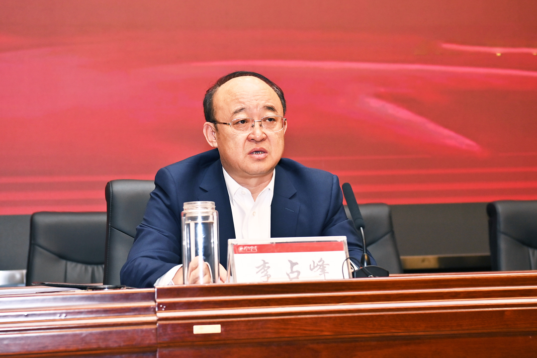 李占峰围绕中央和自治区关于学习贯彻习近平新时代中国特色社会主义思想主题教育的部署要求,对学校扎实开展主题教育进行动员部署。一是理论学习入脑入心。全面系统学习掌握习近平新时代中国特色社会主义思想的科学体系、精髓要义、实践要求,延伸学习习近平总书记关于教育特别是高校工作的重要论述、中央及教育部关于高等教育的文件政策等,推进理论大学习、思想大解放、观念大更新。二是调查研究务求实效。结合学校领导干部“五个一”系列实践活动,注重靶向选题,力戒形式主义,强化成果转化,拿出破解难题的实招硬招,将调研成果转化为办学治校的具体举措。三是推动发展有力有效。围绕党的二十大关于教育科技人才的战略部署,紧扣自治区“两件大事”,把学习和调研落实到学校“九大行动”中。四是检视整改动真碰硬。坚持边学习、边对照、边检视、边整改,将问题整改贯穿主题教育始终。五是建章立制务实管用。坚持“当下改”与“长久立”相结合,及时总结凝练主题教育典型成果,建立巩固深化主题教育成果的长效机制。