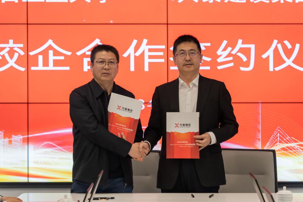 学校相关部门、学院负责人,兴泰建设集团有限公司相关领导参加签约仪式和校企合作座谈会。兴泰建设集团有限公司党委副书记、运营总监王向廷主持签约仪式。