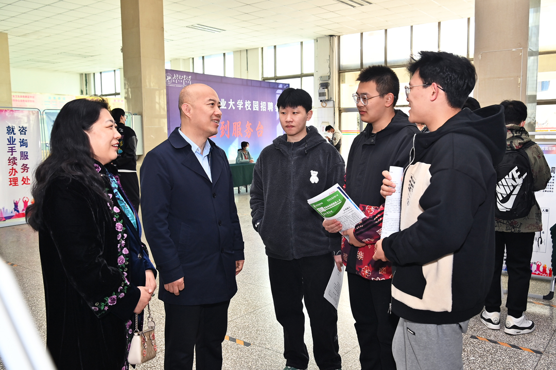 教育厅、团市委相关负责同志深入招聘现场指导工作校长郭喜招聘会现场,详细了解用人单位的发展前景、岗位特点、人才需求、培养计划、薪酬待遇工作生活环境等学生关心的实际问题与毕业生亲切交谈,询问求职进展,鼓励毕业生积极就业同时要求招生就业处认真分析就业形势,积极拓展就业市场,为毕业生精准推送岗位信息。