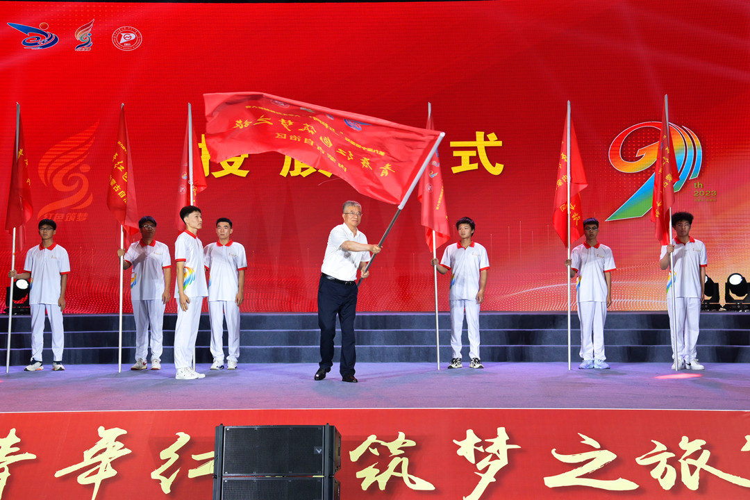 活动最后,李盈为“红旅”学子授旗,与会领导与嘉宾共同启动第九届中国国际“互联网+”大学生创新创业大赛内蒙古赛区“青年红色筑梦之旅”活动。活动在雄壮激昂的《歌唱祖国》声中圆满结束。