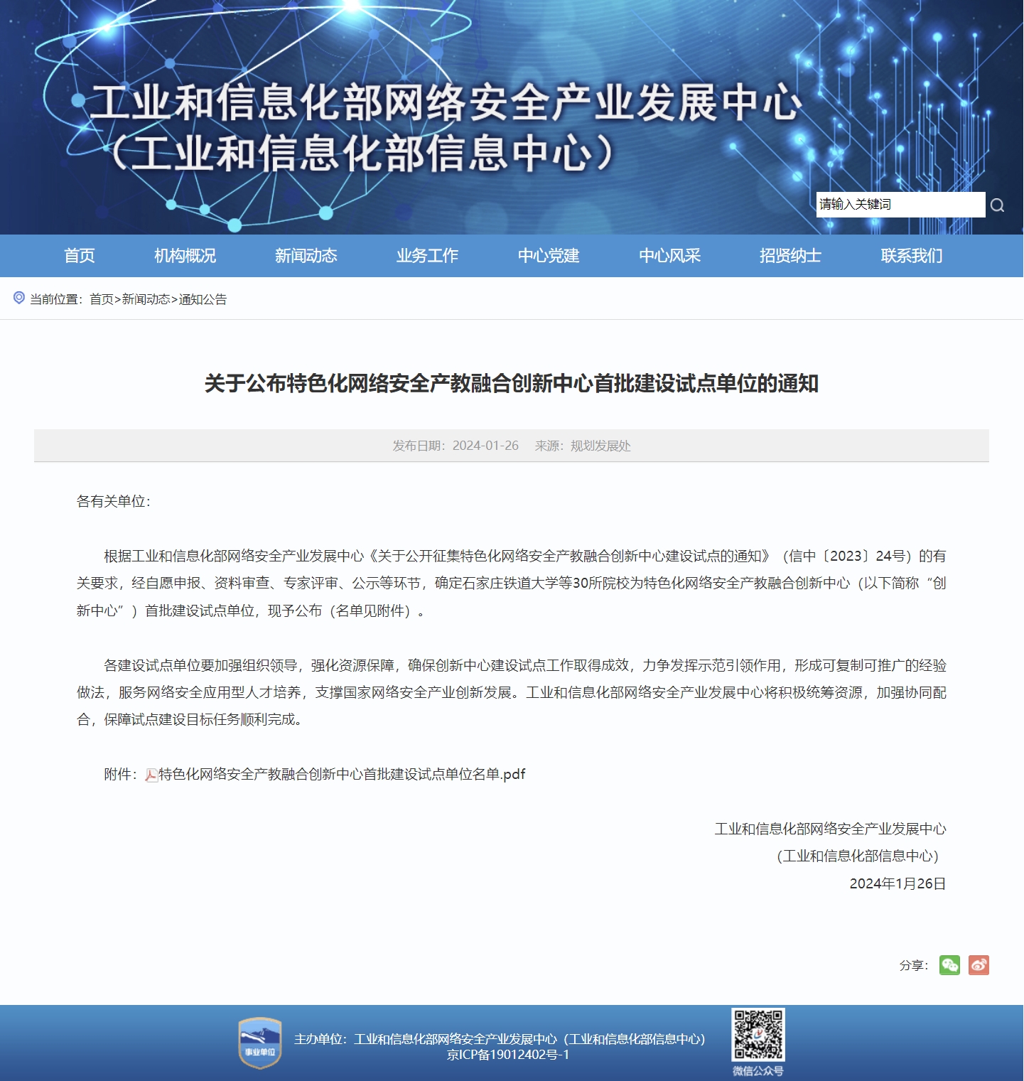 beat365获批工信部特色化网络安全产教融合创新中心首批建设试点单位