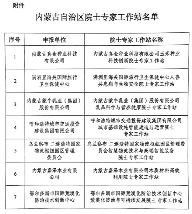 附件:内蒙古自治区院士专家工作站名单