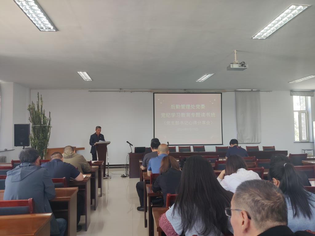 为深入学习贯彻《中国共产党纪律处分条例》,促进后勤广大党员干部学纪、知纪、明纪、守纪,5月14日至15日,后勤管理处党委举办为期2天的党纪学习教育专题读书班。读书班以集中学习、专题培训、党支部书记分享心得、党委书记讲授纪律党课相结合的方式开展,后勤管理处全体党员、非党员科级干部参加。